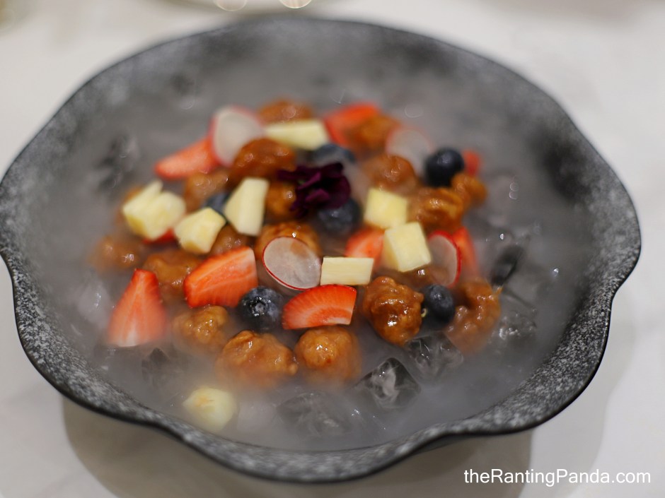 For something non spicy, try the Sweet and Sour Pork Fruit Platter On Ice (S$32.8) where the Pork is served with homemade sweet and sour sauce accompanied by purple sweet potato, strawberries, blueberries and pineapple.