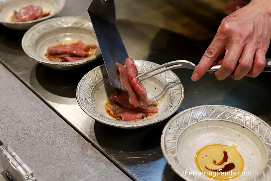 I love sukiyaki, so this course is naturally one of my favourite ones. The beef used here is a breed familiar to me – Hida beef (especially so after my Takayama trip this year) – where the Hida ribeye is marinated with sukiyaki sauce made with mirin, sake, and shoyu, then grilled on teppan.