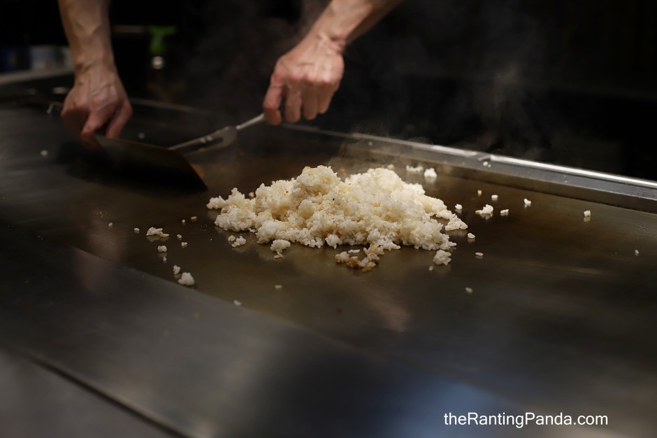 The last savoury course features freshly cooked Hokkaido Nanatsuboshi Japanese rice which is stir-fried on the teppan with vegetable oil, butter, garlic, salt and black pepper.