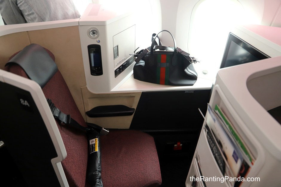 On to the most important feature of the seat, how did the bed fare? I have read a couple of reviews on how narrow the seat on Sky Suite III is, and true enough, it is definitely not the widest Business Class seat around. There is barely space to toss around, so it is most certainly a flat lie down position for most people. I am about 1.7m, so I did not have an issue with the length of the bed and fortunately I did not need to bend my legs at all. For a mid-haul 7 hours flight, I do not have a big issue with the flatbed which is easily adjustable via the incline or recline button below the magazine rack.
