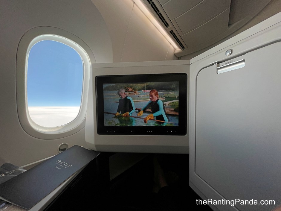 For the entertainment system, the touchpad controller is quite small, and I find it challenging to press through the small buttons to select my shows. That said, the 17-inch monitor is touchscreen. My other rant is that the in-flight selection is quite limited and bad in terms of variety of shows as compared to Kris World on Singapore Airlines, so I suggest loading a couple of shows on your Netflix account.