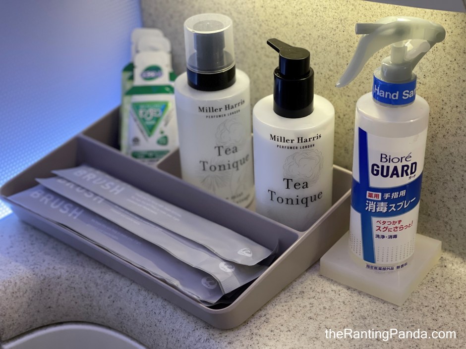 The Business Class bathroom size is basic and clean, and you can expect basic amenities kit in the bathroom by Miller Harris.