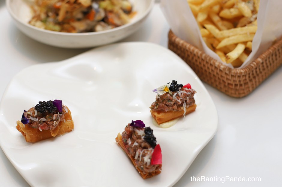 The beef tartare is quite interesting in the sense that the 100 days aged Angus tenderloin sits on a crispy dough fitter. It is also made more luxe with the addition of kaviari caviar and shaved parmesan.