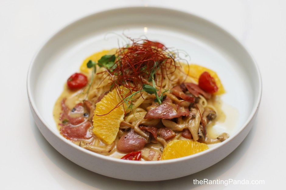 For mains, I tried the Smoked Duck Pasta (S$32) where you get linguine pasta tossed in yuzu cream and leek bacon ragout. The pasta is very creamy and is topped with charred smoked duck and bits of oranges, so it could get a little cloying after a few mouthfuls.