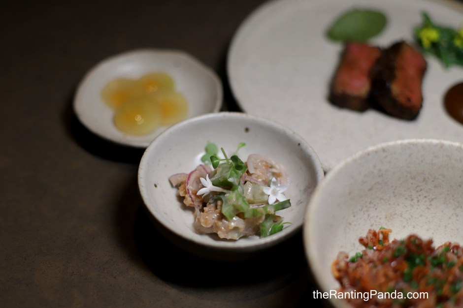 The Place One of the most highly anticipated new restaurants at the end of last year, I finally got down to Seroja restaurant located at Duo Galleria in Bugis recently. The name Seroja means lotus flower in Malay language and is also the street name of Chef Owner Kevin Wong’s family home in Klang, Malaysia. The space of Seroja is elegant and minimalist, where the layout is a mix of a long counter seating and intimate table settings for larger groups. Prior to Seroja, Chef Kevin was the Head Chef of Meta Restaurant Singapore.