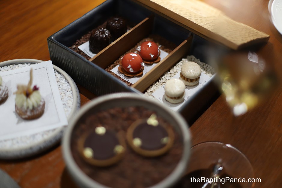 The last part of the meal is a series of bite-size desserts – Gariguette Strawberry Cheesecake; Canele De Bordeaux; Tahitian Vanilla Macaron with Roasted Yeast Ganache; Choux Croustillant with Ivoire Chocolate, Mango & Passionfruit; and Earl Grey Tart with Tonka Bean.