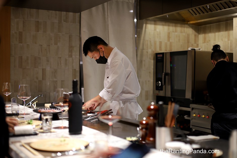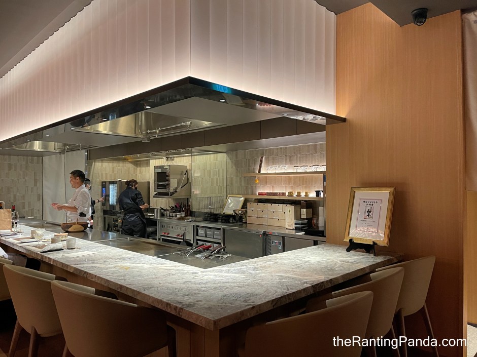 Upon entering the restaurant, I was greeted by a zen-looking hallway which leads into the main dining hall, a beautifully designed teppan counter which accommodates 12 pax.