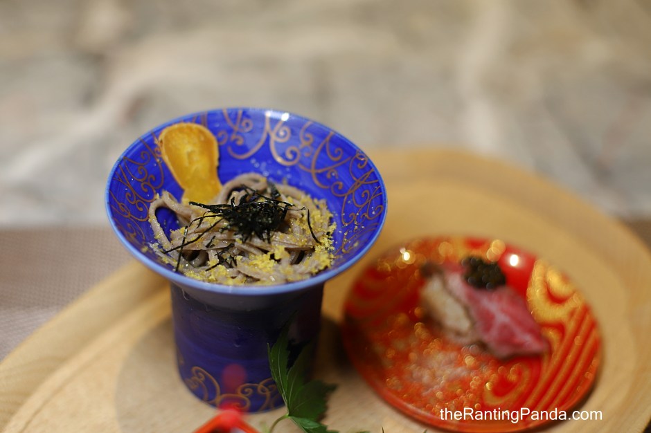 I had the 8-course Kagayaki Menu and my meal started with the Hassun – Chef’s Daily Appetisers. The hassun here consists of three elements: soba, sushi and croquette. The cold house-made soba is prepared using only buckwheat flour and is quite a refreshing start.