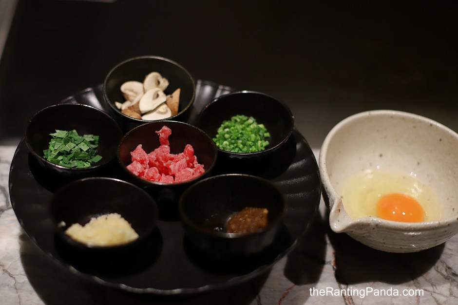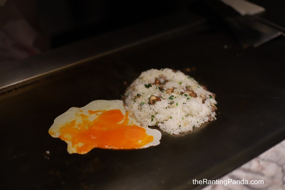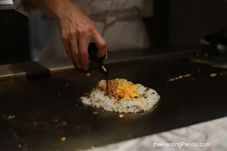 Japanese rice (koshihikari) is used here with Hokkaido spring water where it is fried on the teppan with Masuda Kagayaki beef, mangetsu eggs, a secret garlic sauce, house-pickled garlic and fresh Japanese herbs.