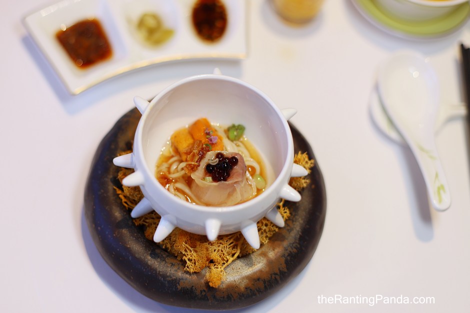 The Food The restaurant is helmed by Executive Chinese Chef Edward Chong, and Chef Edward’s style is quite innovative in the sense that you can expect modern touches to his cuisine instead of the typical Chinese dishes. Some of his signature dishes include the Deep-fried Cigar Rolls filled with Black Truffle, Foie Gras and Prawn, Marble Goby Fillet with Crispy Scales and Homemade Organic Pineapple Sauce, Stewed Mung Bean Noodles with Drunken Crab in 10-year in ‘Gu Yu Long Shan’ Rice Wine, as well as the Four Combination Platter that comprises seafood fritters, chawanmushi, sliced Peking duck and puff pastry.