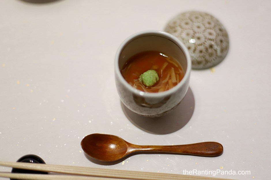 My first course is a silky Chawanmushi with scallop and topped with wasabi.