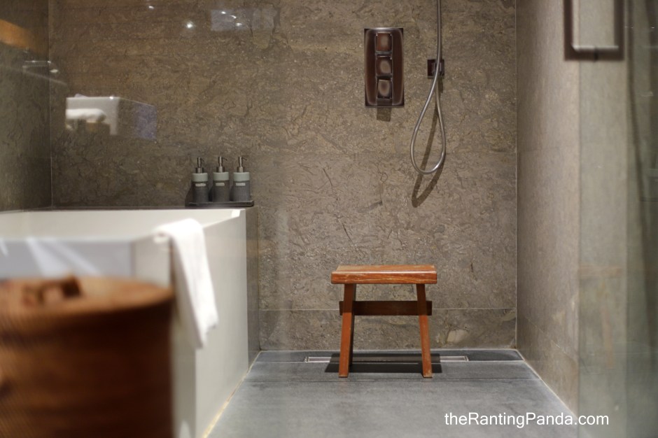 The bathroom area is very spacious, where there is a bathtub and standing shower with a stool, just like how it is in Japanese onsens.