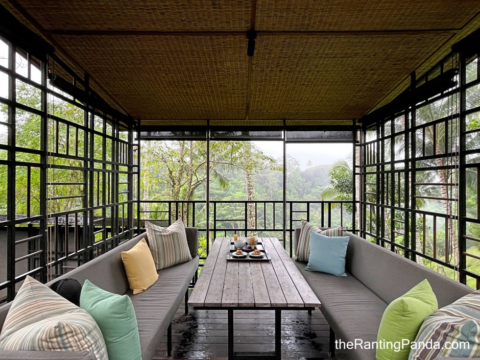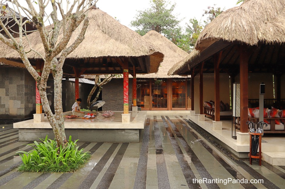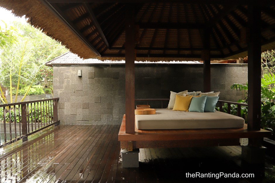 My villa number was 207, and I had to walk through a small garden courtyard, before it opens up to the vast villa space which includes a gazebo with a roof made of alang-alang, a sacred grass.