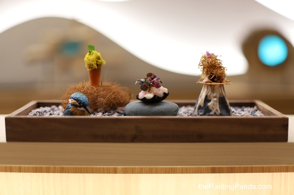 The Place Located in Telok Ayer Street is two months old Japanese Omakase restaurant, Sushi Kawasemi, which is a zen retreat from the hustle and bustle of CBD. The interior of Sushi Kawasemi is denominated by a long counter seating in wooden furnishings, as well as hand-drawn murals which include a kingfisher and two birds. In fact, Kawasemi means kingfisher in Japanese.