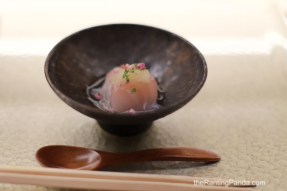 Most soups served at Omakase restaurants are quite normal, but I now know why this course is called a specialty soup. For one, the huge clams from Mie Prefecture is so good! Plump and fresh, it is nicely sliced so it makes it easy to enjoy it. The clear soup taste amazing, and it is made from Mt Fuji water and Sake, and you also have bits of junsai (a type of water weed) in the broth.