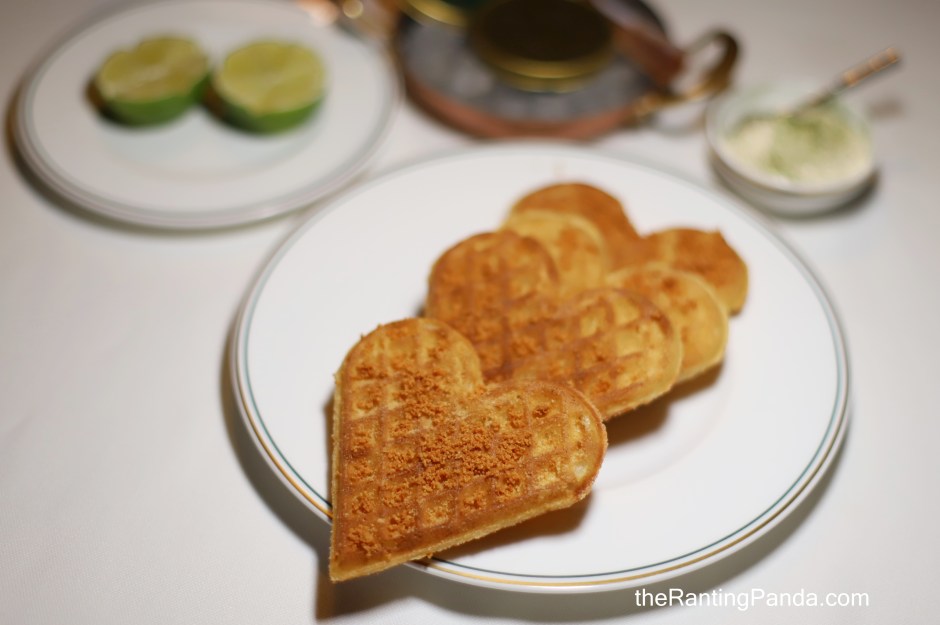 Spread the crème fraiche on the waffle, topped it with the caviar and browned butter sauce along with some lime, it is as indulgent as a snack could get.