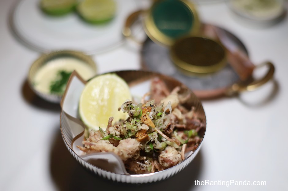 The Calamares Fritos (S$14) is an easy snack to share where the squid is coated with black pepper, green onions, lime & served with galangal aioli dip.