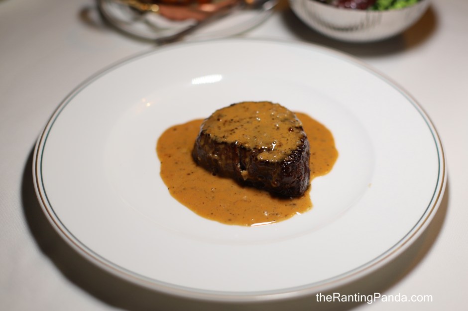 The most theatrical dish for me is the Whiskey Flambéed Beef (prepared tableside) (S$68/Angus, S$110/Wagyu) where the climax of the tableside service is the huge flames as the whiskey is poured over the beef along with Kampot & green pepper sauce.