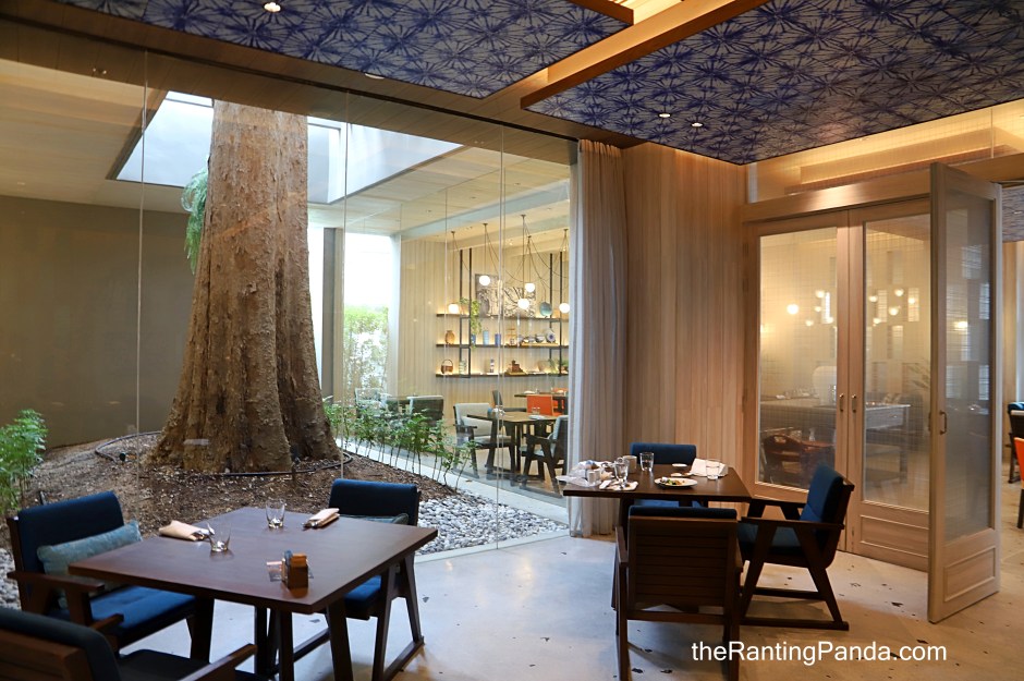 It is also interesting to note the inclusion of trees into the architecture of the building, specifically the Yang Na tree where its bark protrudes from the restaurant through the lobby.