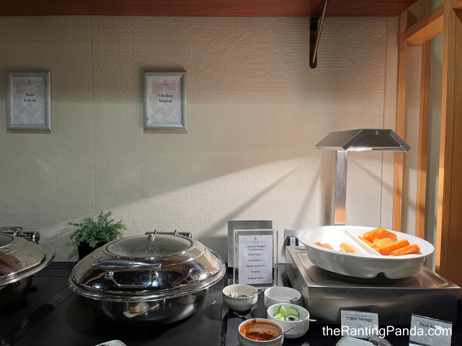 The Food The buffet spread is not huge, with a small selection of Asian dishes like Nasi Lemak, Sambal Chicken and Chicken Congee. Western options include the likes of salad and cold cuts. It is not amazing, as compared to the SilverKris Lounge in Singapore.