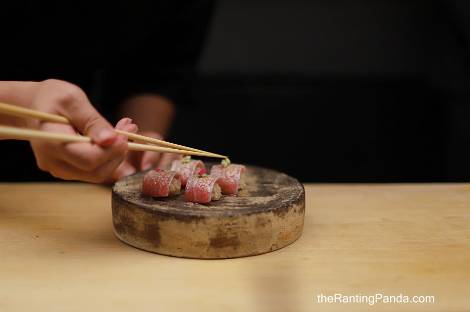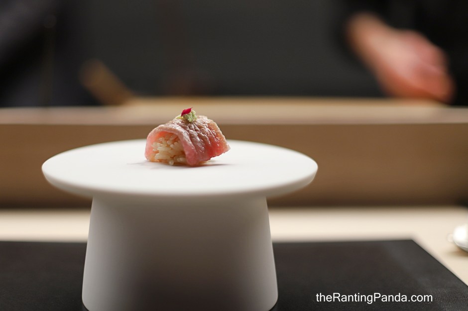 Lastly, the Aburi Otoro (the fattiest cut) is sprinkled with snow salt and paired with red vinegar rice. This piece is also lightly seared with binchotan so you get that bit of smoky flavour.