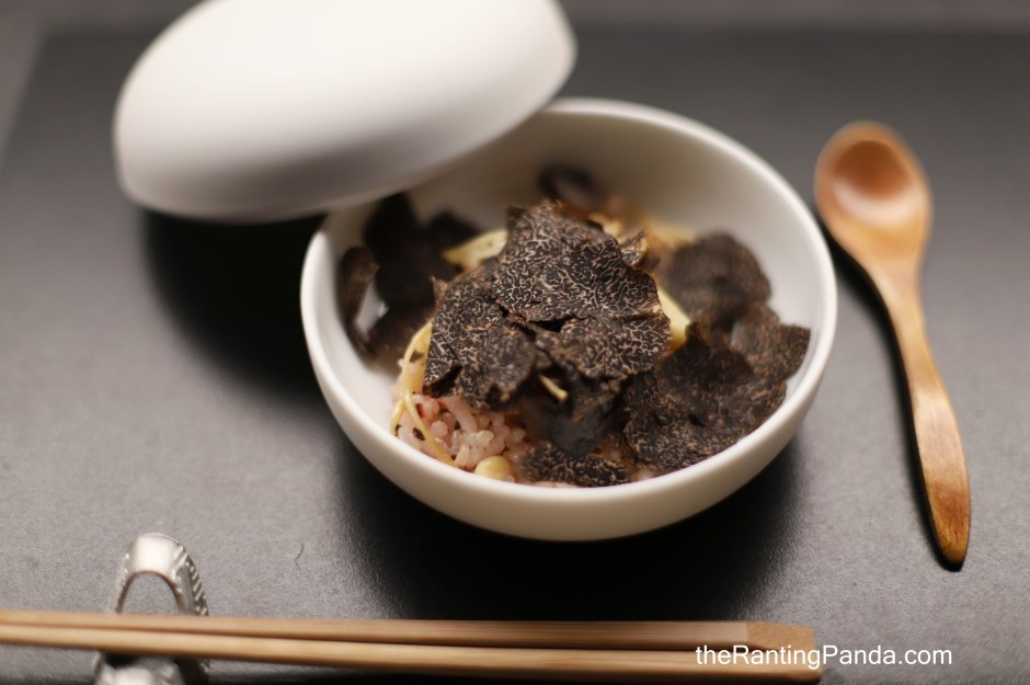 What’s not to love about black truffles and mushrooms? An aromatic white rice here is cooked with black winter truffles from the Himalayas, and mixed with seasonal wild mushrooms (Matsutake mushrooms, enoki mushrooms and oyster mushrooms).