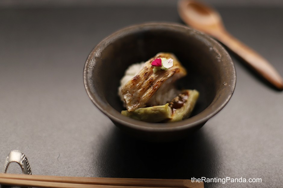 I love sashimi and this course brings sashimi to a whole new height. You get lightly marinated Hamachi from Ehime prefecture before it is smoked with hay. It is then filled with ponzu daikon jelly and wrapped in nori, an interesting way to bring out the fresh flavour of the hamachi.