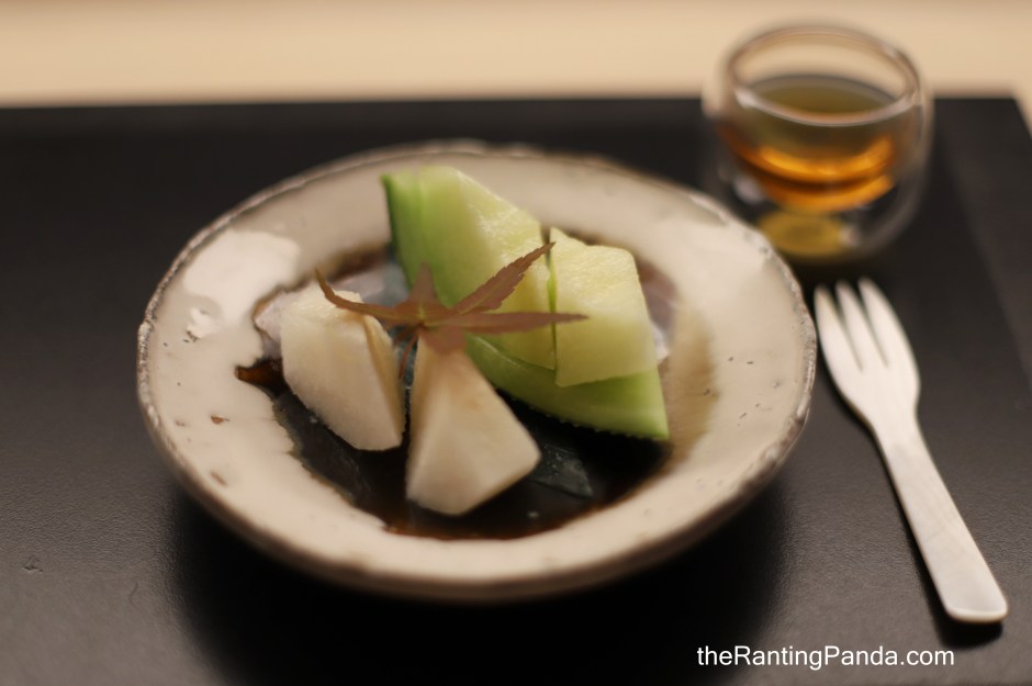 First act of dessert are two types of Japanese fruits – Muskmelon from Shizuoka and Nashi pear from Tottori.