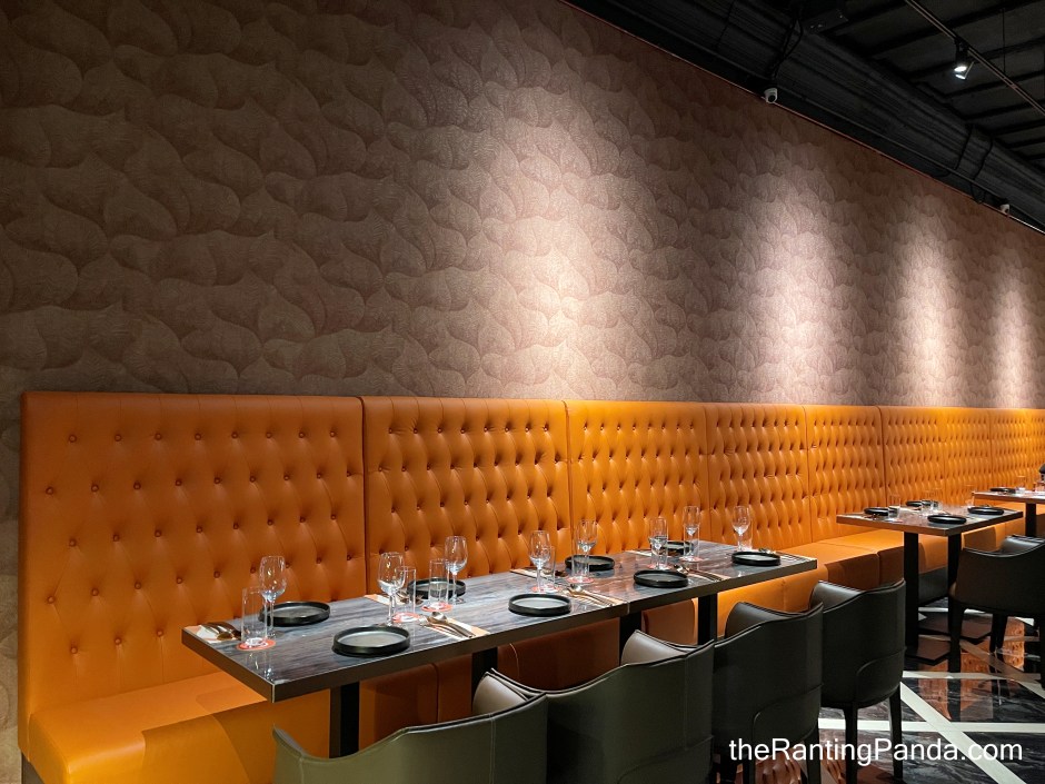 The Place Opened just this month along Mohamed Sultan Road, I checked out The Curry Club Signature, a new contemporary casual-fine dining Indian restaurant by a local South Indian family. The restaurant is spacious and occupies a shophouse unit on the same row as Esora and Meta. The interior of The Curry Club Signature takes on a dark tone with black titled flooring contrasted with orange seats, along with a bar counter in the centre of the restaurant.