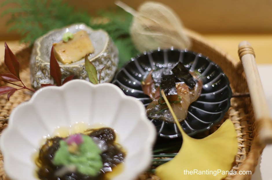 My meal started with 3 Types of Signature Chef Appetisers which features Okinawa seaweed with sea cucumber, seasonal Buri (Shima Aji), and Ankimo from Hokkaido. Special mention goes to the Ankimo which takes a week to prepare as it is marinated and aged in Chef Rinto’s secret sauce.