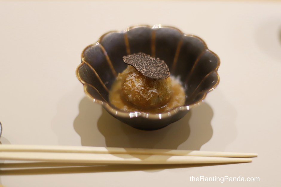 I had a lovely scallop chawanmushi where the Hokkaido scallop is immersed in a broth infused with the sweetness of the scallop and depth of Ichiban Dashi. The dashi is crafted from Katsuobushi that has been aged for three years, finished with some black pepper for added dimension to the flavour. Topped with sweet potato chips for some crunch.