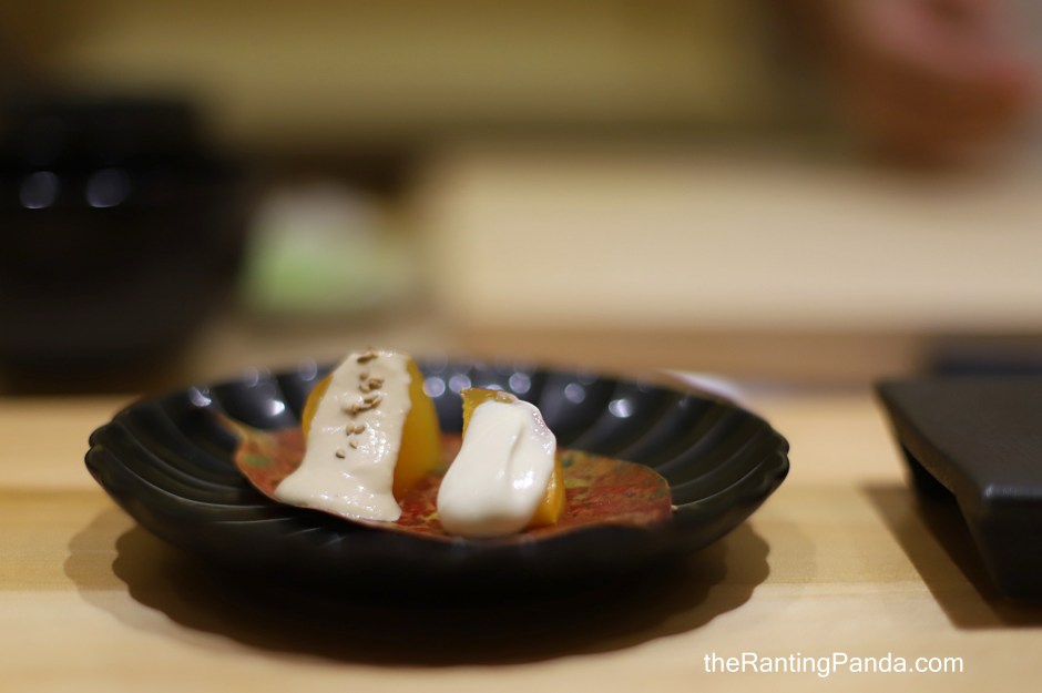Palate Cleanser (Persimmon with tofu sauce and black sesame sauce)