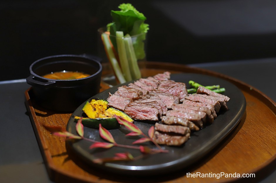 I had the Drim Korean Barbecue – Beef Set Menu (S$125 per person) which comes with three cuts of beef – Sirloin, Marinated Short Ribs and Rib Finger. Some sides are served in this set such as vegetables to go with the meats, soybean tofu stew and kimchi. Condiments such as wasabi, sea salt, Himalayan salt and smoky salt are also served to pair with the meat.