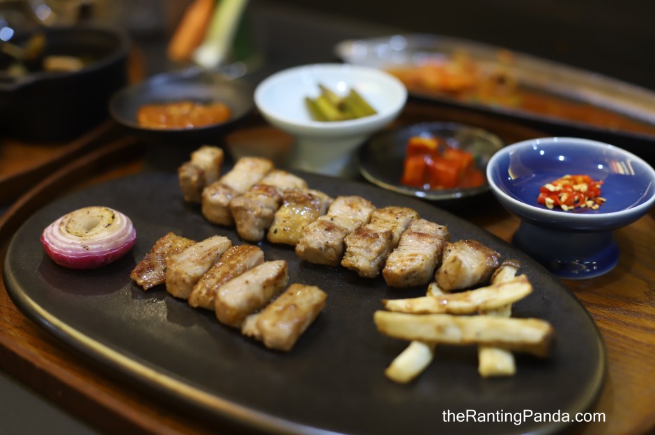 For non-beef eaters, there is the Drim Korean Barbecue – Pork Set Menu (S$90 per person) which features three cuts of pork – Kurobuta Pork Belly, Kurobuta Pork Collar and Iberico Pork Jowl. Honestly, the pork meats are quite good as I initially thought the beef would fare better. It turned out that each cut of pork is very flavourful and juicy and is great to go with the accompanying lettuce and chilli sauce.