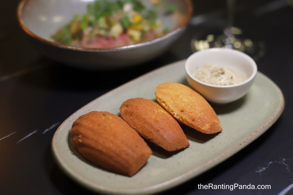For a start, I had the Corn Bread (S$6) which is interestingly shaped like madeleines. The corn bread here is a blend of cornmeal flour, fresh jalapeño, and sweet corn paired with a side dip of fermented cabbage and creamy cream cheese.
