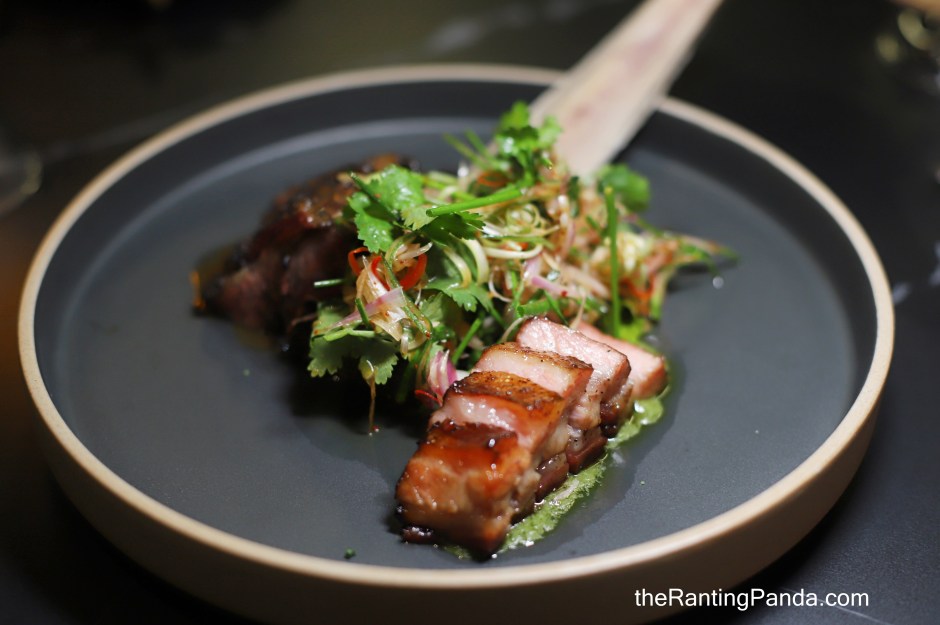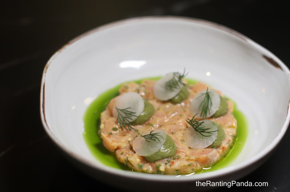 Another dish I would recommend is the Salmon Tartare (S$23) where the salmon is mixed with bold Thai flavours, fish sauce and smoked avocado puree. Mix it all up and the flavours are tangy and very appetising, along with the pickled daikon and a drizzle of spring onion oil.
