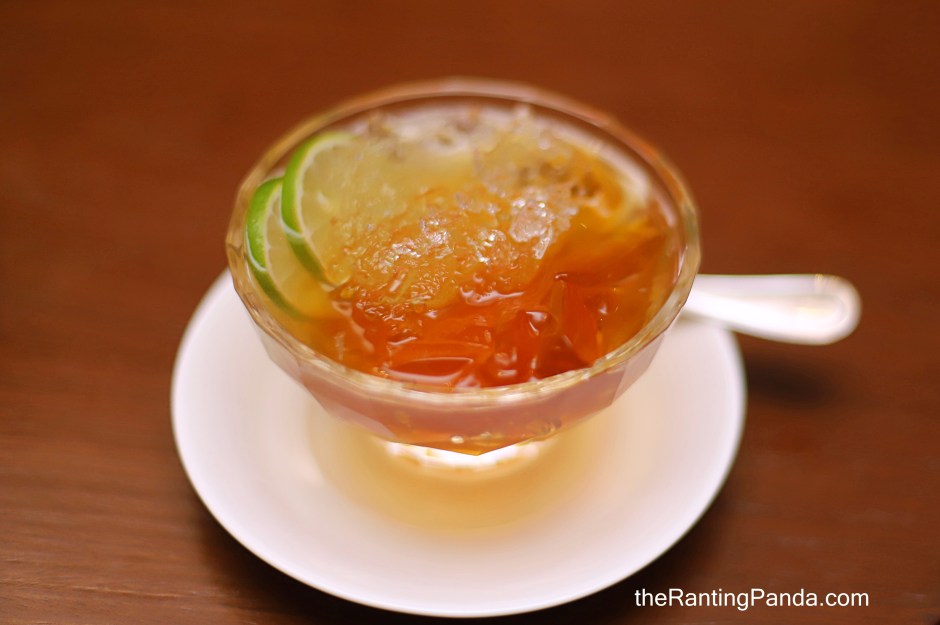 For desserts, I had the Chilled Oolong Ai-Yu Jelly with Green Lemon (S$6.90), a simple chilled end to my meal.