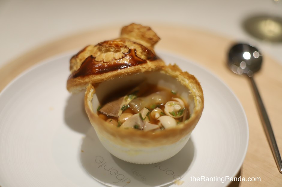 The next course is chef’s signature dish, and I was served a ballooning puff pastry. Underneath the crisp pastry is a rich soup of mullet, fish maw, sea cucumber and a tinge of Shaoxing wine.