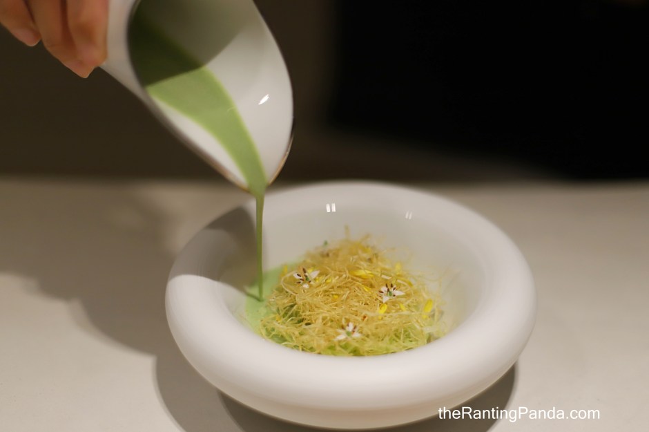 This dish is quite unique in the sense that there are strands of delicious Japanese onions amidst the abalone. A green broth of abalone, clams and vanilla is then added to the dish.