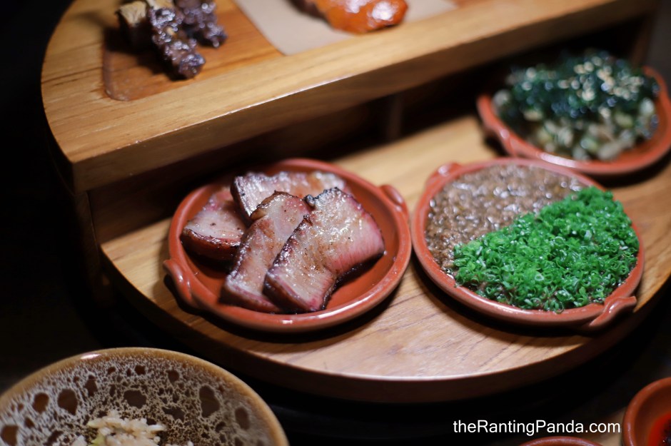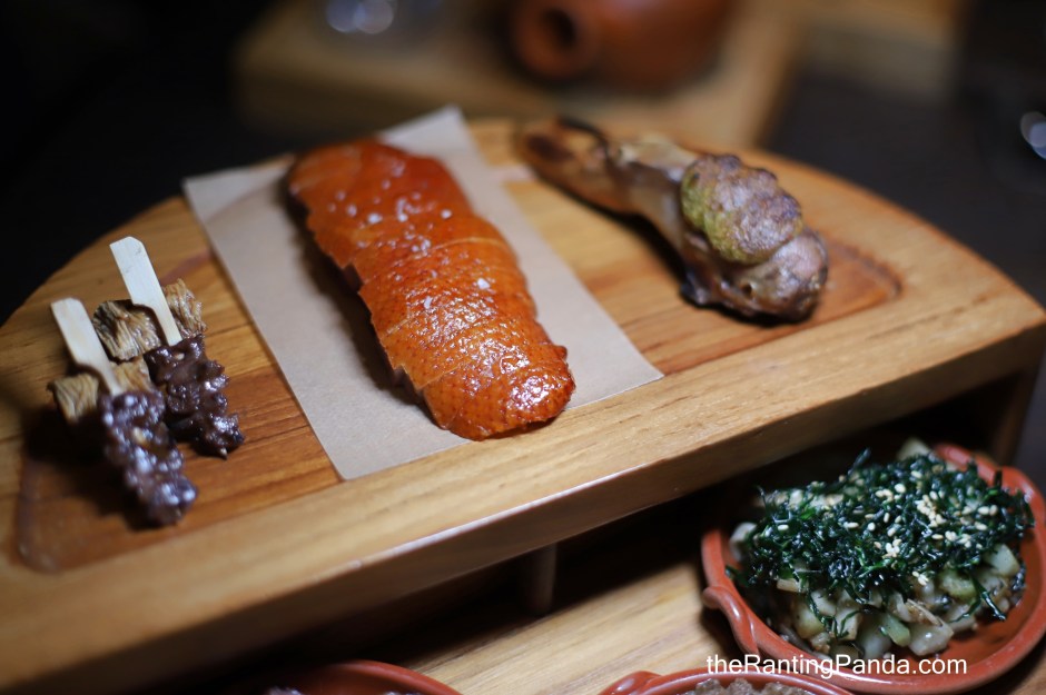 The next part of the meal is a series of dishes to go with the fried rice which is served table side with a nice aromatic and smoky flavour. There are some pretty dishes ingredients here like duck brain and duck heart which are thankfully, not that gamy.