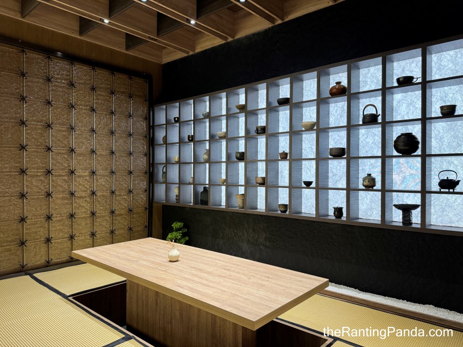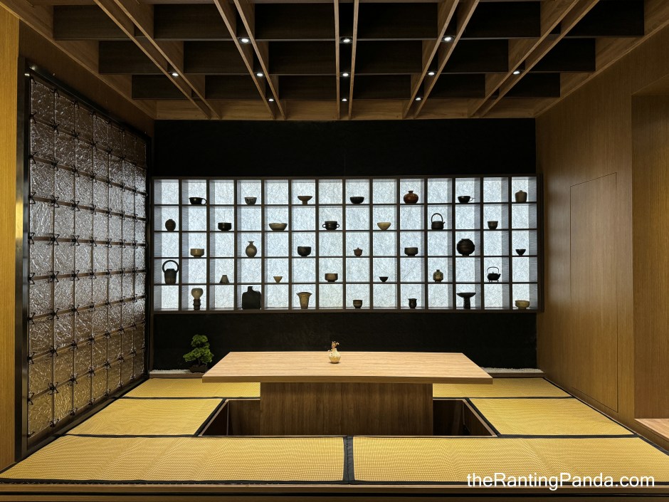 There are three main dining sections – the counter seats where you get to have the most interaction with the chefs and teamasters, a long communal wooden table which is the centrepiece of the space, and also a tatami room section which embodies the Japanese tea ceremony spirit the most.