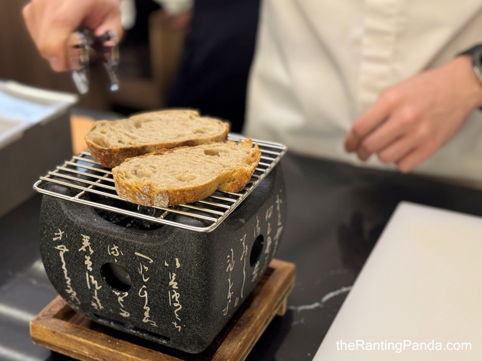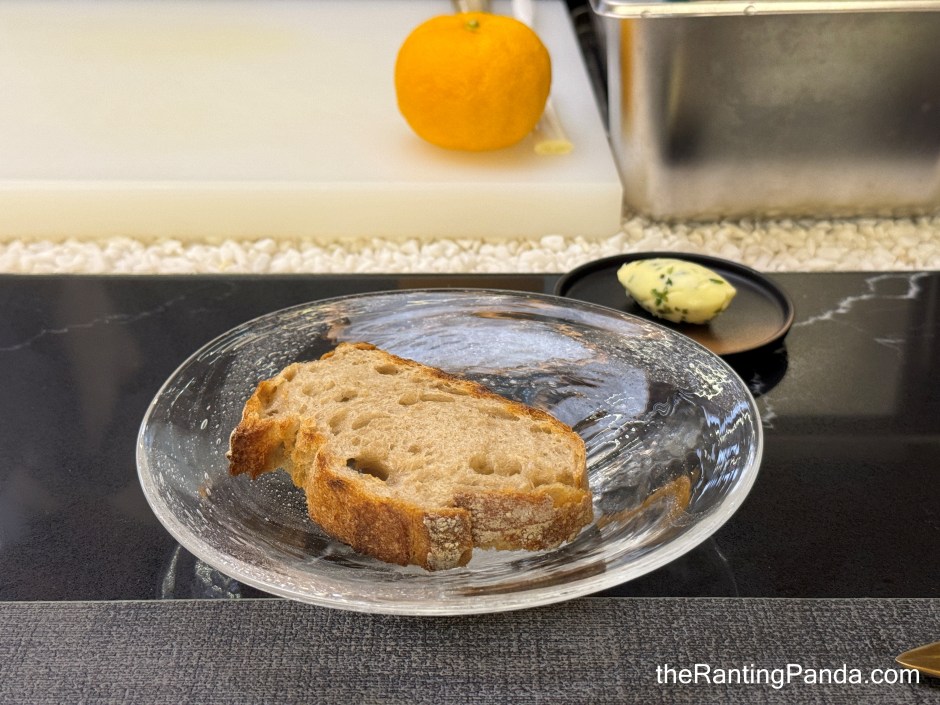 Japanese shokupan (milk bread) and freshly toasted sourdough bread are first served for a start, along with Nori (seaweed) butter. I have to say these two types of bread are delicious.