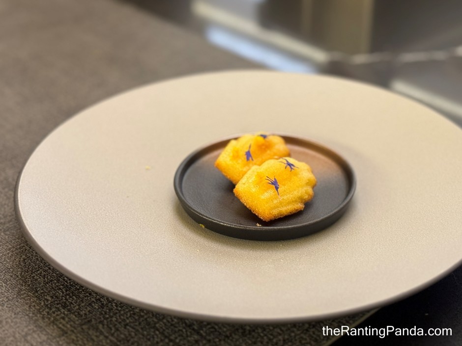 The first savoury course is a freshly baked madeleine topped with yuzu zest. It is a bite-size portion which is ideal after the series of bread I had earlier.