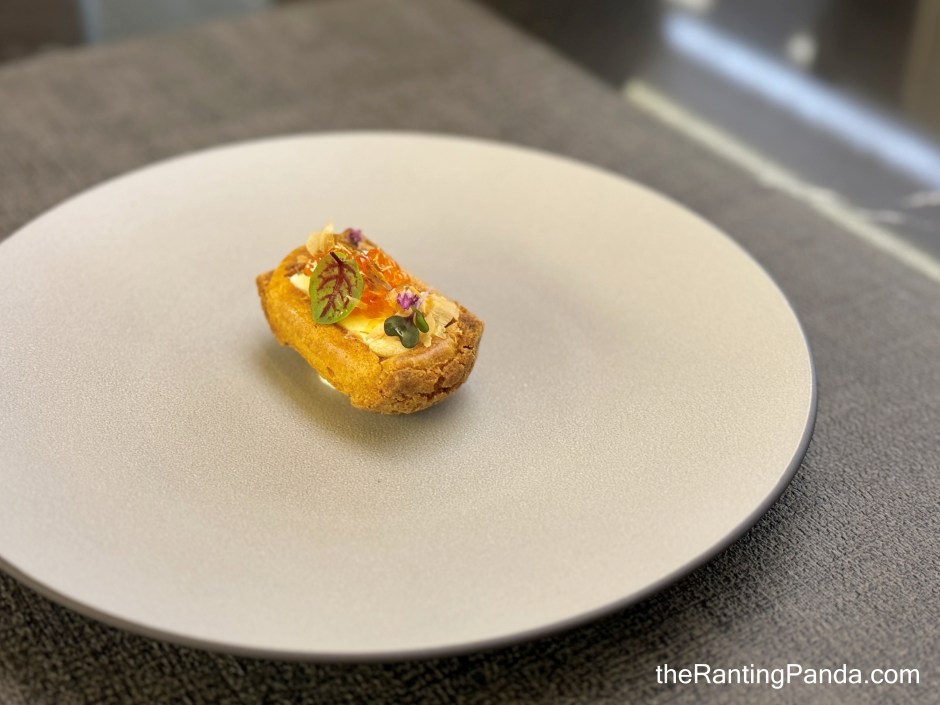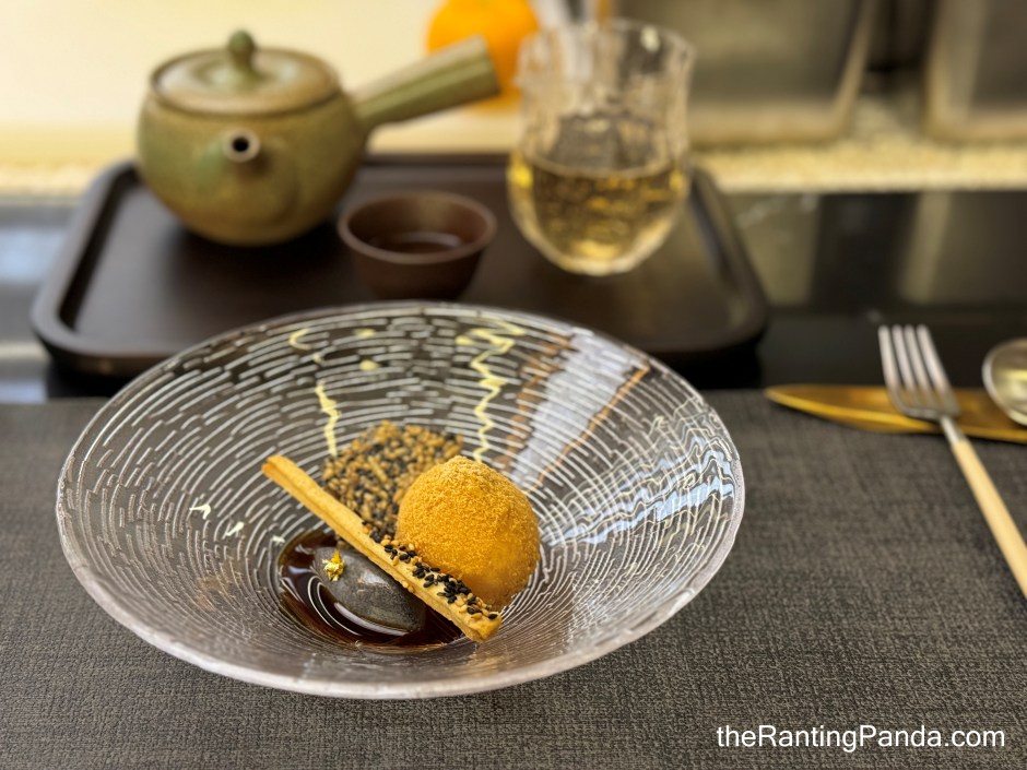 Moving on to the sweet side of things, the most unique part about this eclair is that it has Kinu tofu within so it helps to balance the sweetness of the flavours. Topped with Hokkaido Ikura along with Ponzu and Bonito Flakes, I love the complex flavours in one bite.