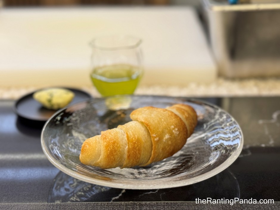 The third savoury course is one of my favourite courses on the menu. It is essentially like a seaweed croissant filled with miso cream cheese and topped with Chitose tomatoes for an added balance. Personally, I enjoyed the croissant on its own without the tomatoes.