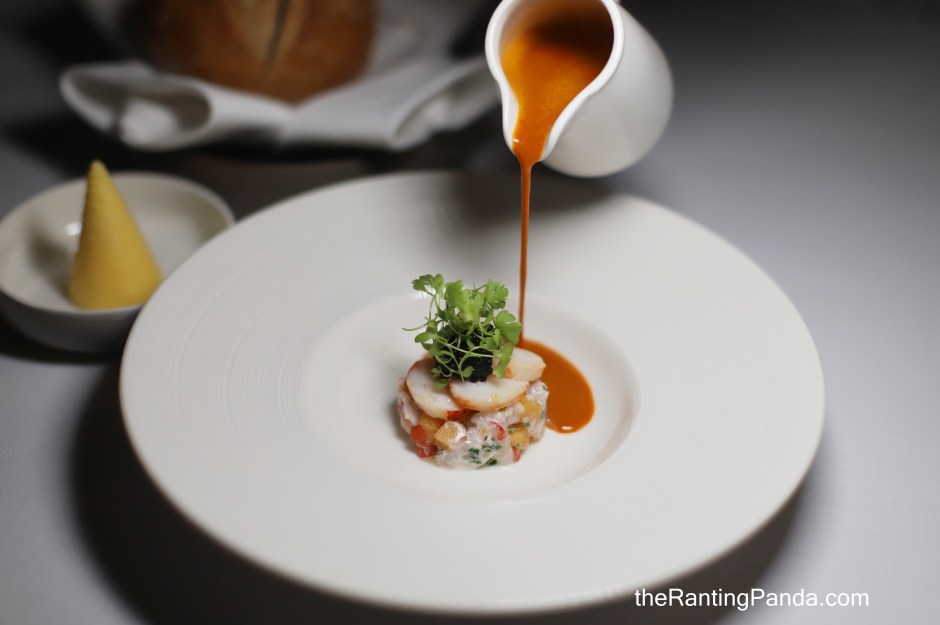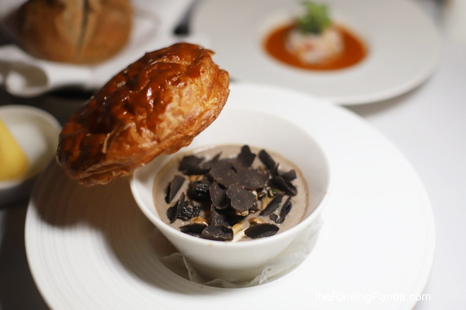 For soup, there are two options on the menu – Forest Mushrooms Velouté (S$28) or the Lobster Bisque (S$28). The best part about the Mushrooms Velouté topped with seasonal truffle is the puff pastry which covers the soup. The mushroom soup is rich, and that crispy and buttery puff pastry is good on its own, or you can dip it into the soup and enjoy it together.