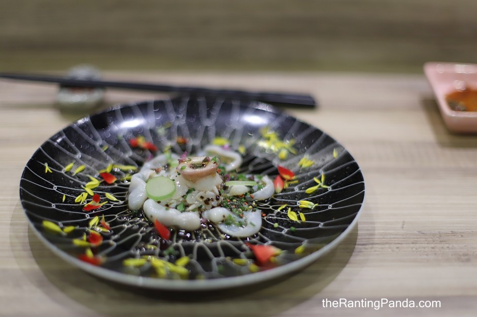 Next up was a series of Seasonal Sashimi – Dry Aged Kanpachi, Shima Aji, Kinmedai, Aged Kanpachi, Mikan Tai (Sea Bream), Smoked Bonito, Ika (Squid).