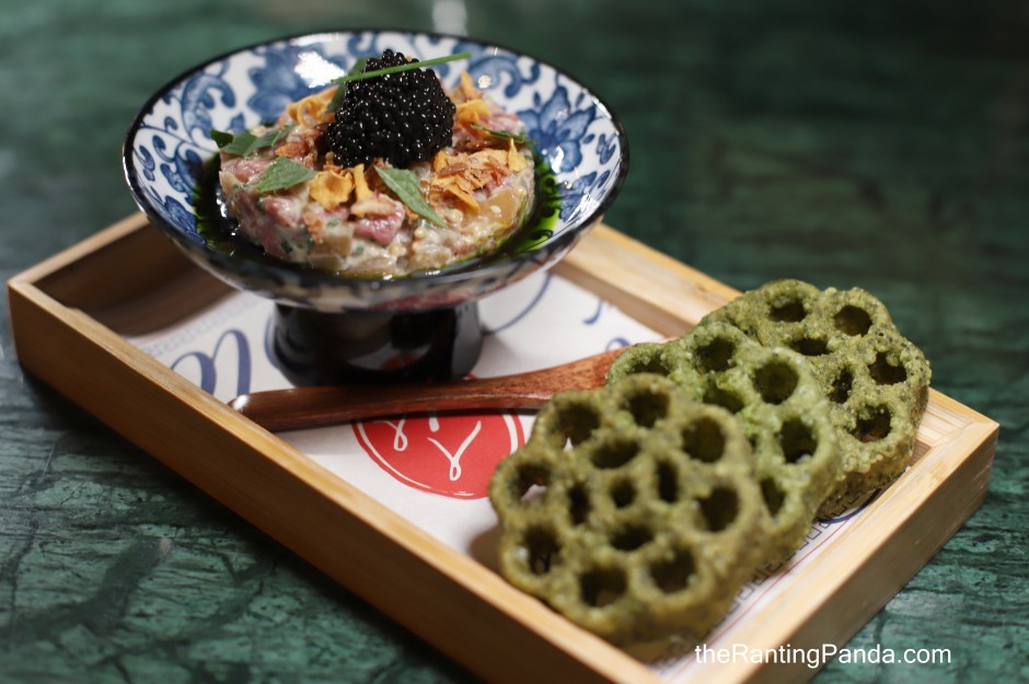 Moving on to the sharing starters, I recommend going for the Steak Tartare (S$26.90) with sour cream, wasabi, mustard, charred onion, and pickled chye sim, topped with fried garlic chips, fried shallot chips, and caviar. This is served alongside shiso Kueh Loyang where you can spread the beef tartare on it to have it in a crispy bite!
