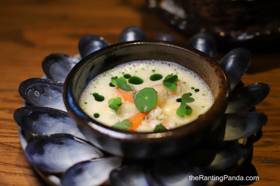 Moving on to the first course, I had the Queen Scallop & BBQ Eel Irish served in a scallop shell. The pan-seared Queen Scallop from Ireland is paired with the soy-glazed eel here along with Sabayon.