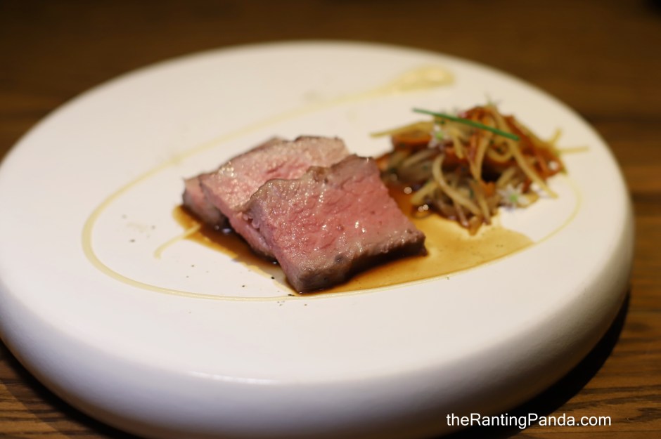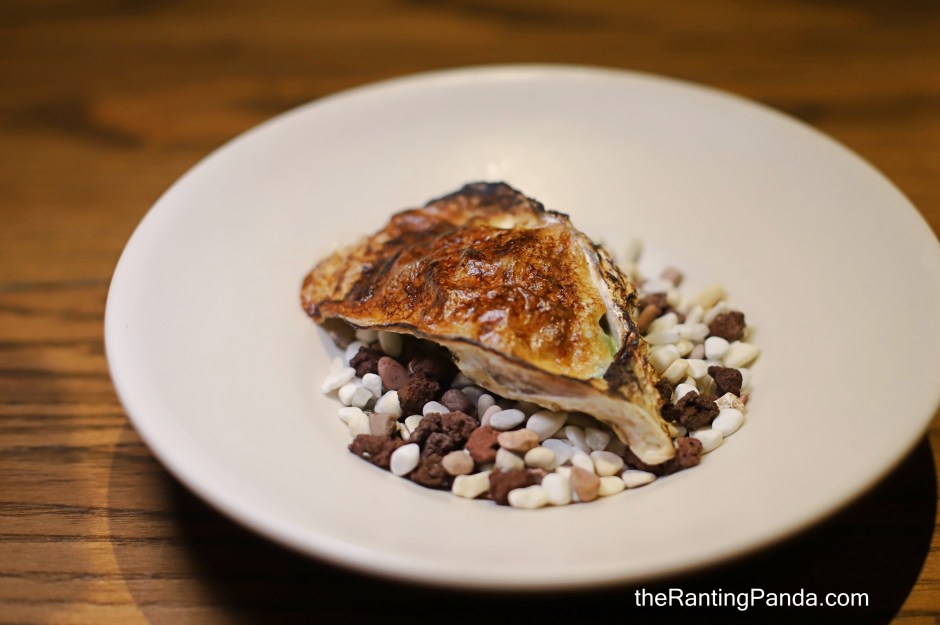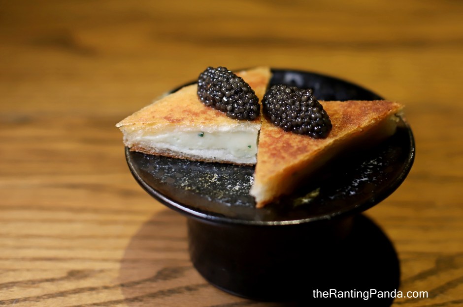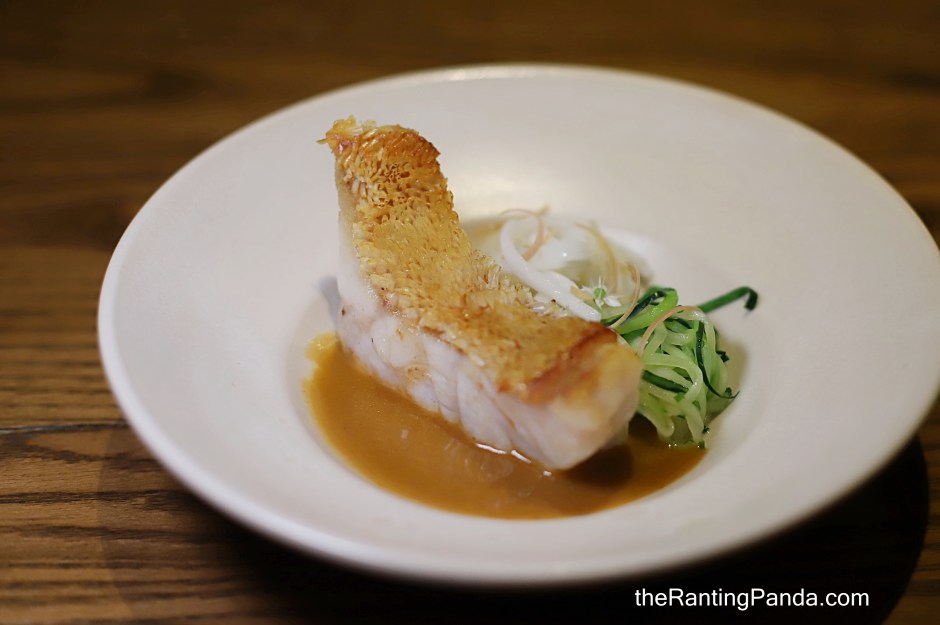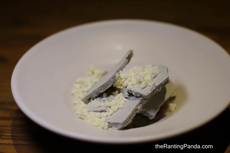 The third snack sounds very exotic as I had Pig’s Head Cheese, Cabbage & Purple Sea Urchin. The pig’s head element is wrapped within the cabbage and it tastes just like minced pork meat to me. Served with a tablespoon of purple sea urchin from Ireland!